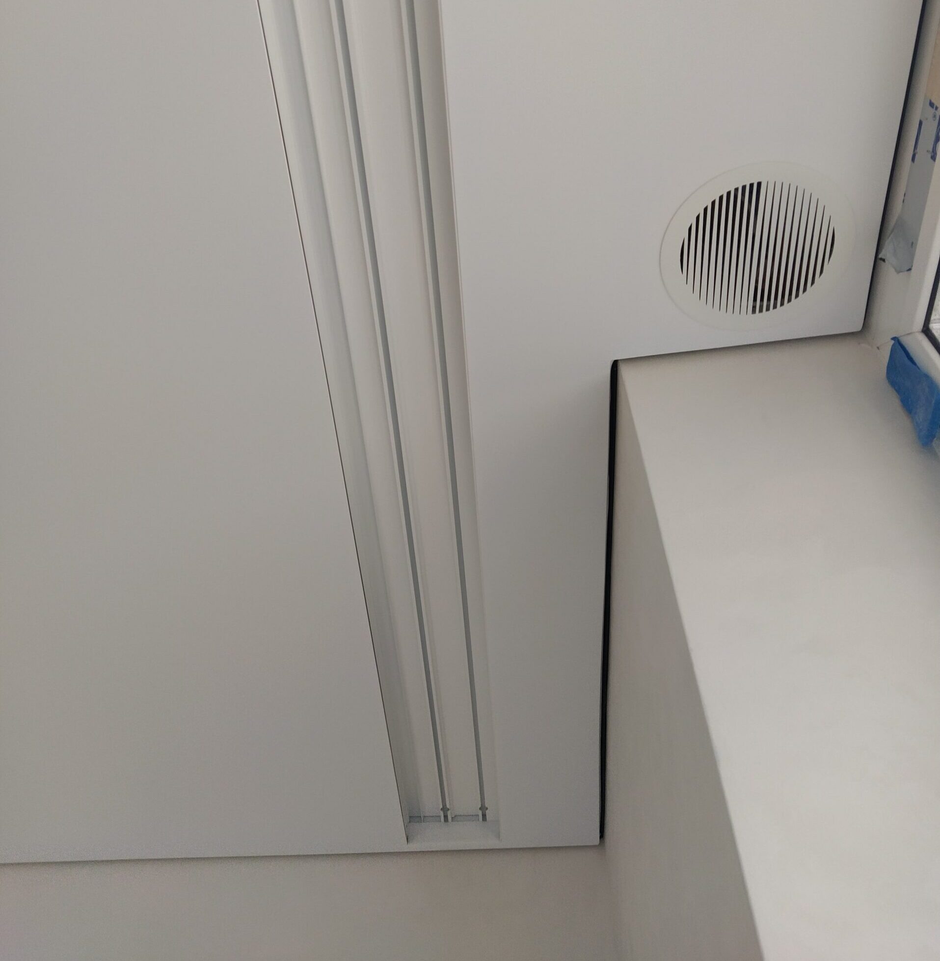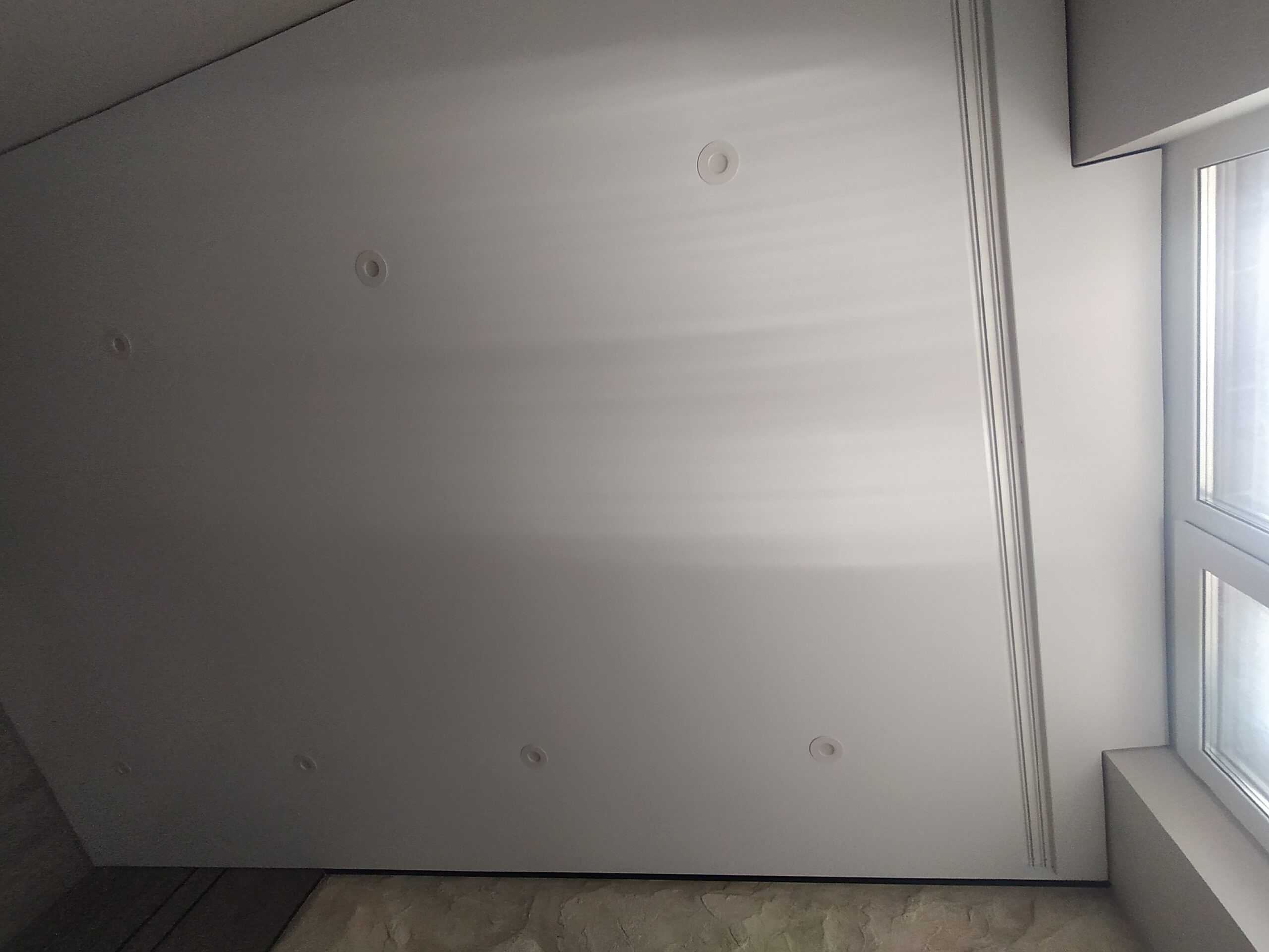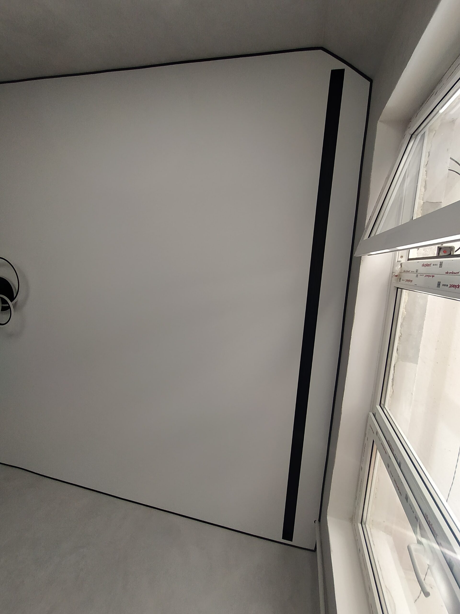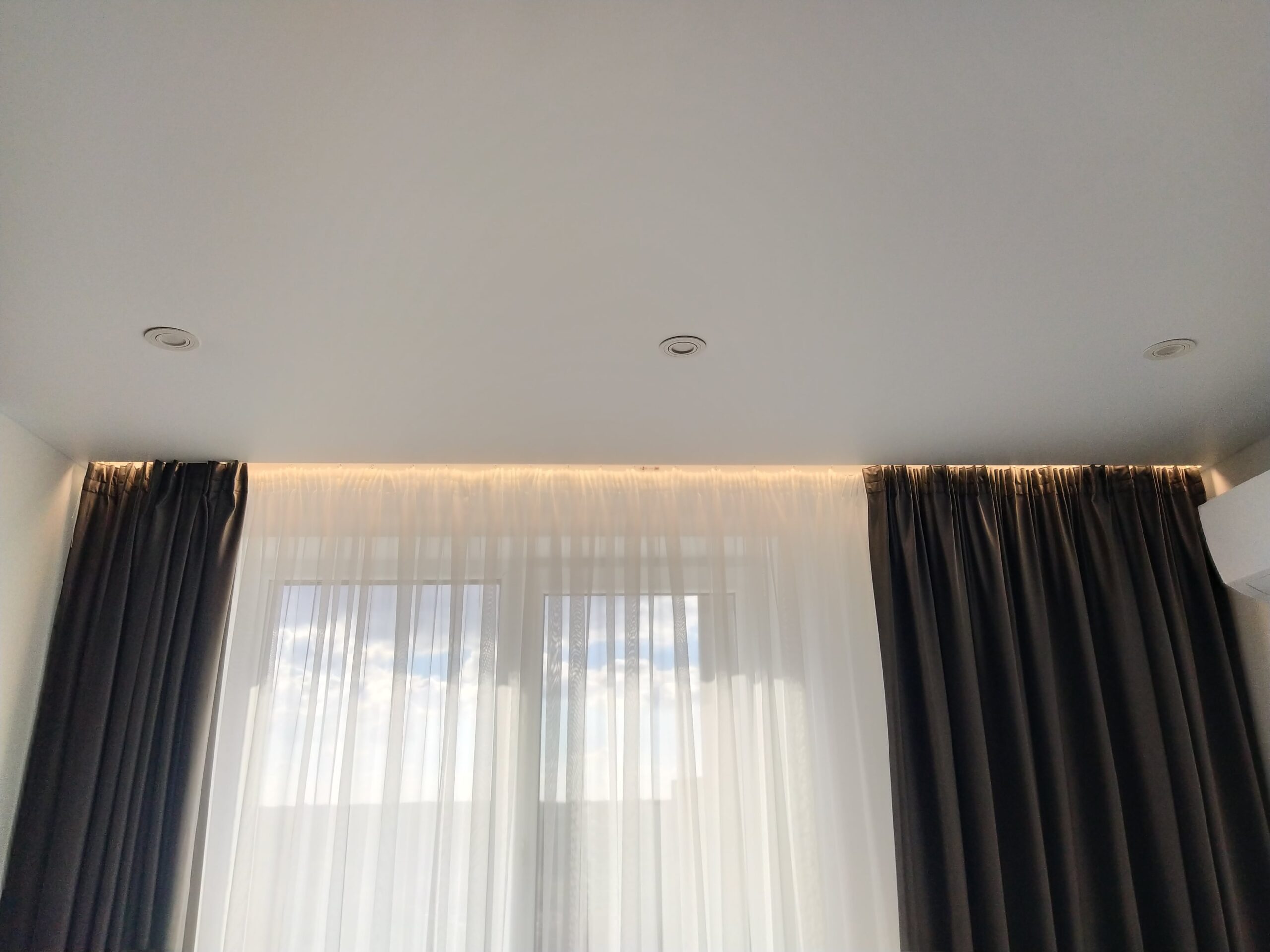У випадку з гіпсокартоном прихована конструкція передбачає створення спеціальної ніші між стіною та натяжним полотном. Наперед потрібно передбачити деякі нюанси: правильно розрахувати розмір ніші для вільного руху штор, врахувати ширину батареї та підвіконня, якщо вони є під вікном. Заштукатурити та пофарбувати чорнове покриття. Тепер все це у минулому!