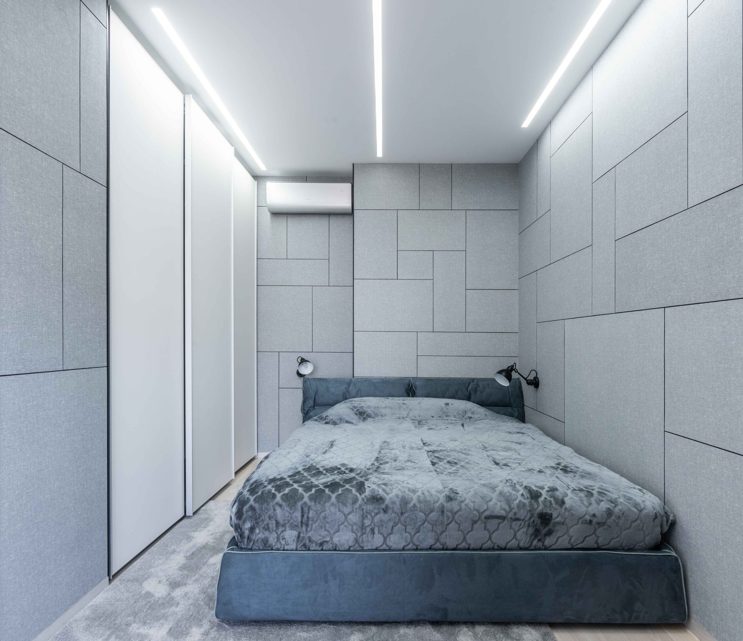 Ще один оригінальний спосіб зонувати простір – використовувати на стелі полотна різної фактури чи відтінку. І тут світлові лінії будуть дуже ефектно виглядати як лінія розмежування. З різних полотен на стелі можна створити оригінальну композицію, а завдяки тому, що у профіль для підсвічування можна закріпити натяжну стелю – відпадає необхідність використання багаторівневої конструкції.