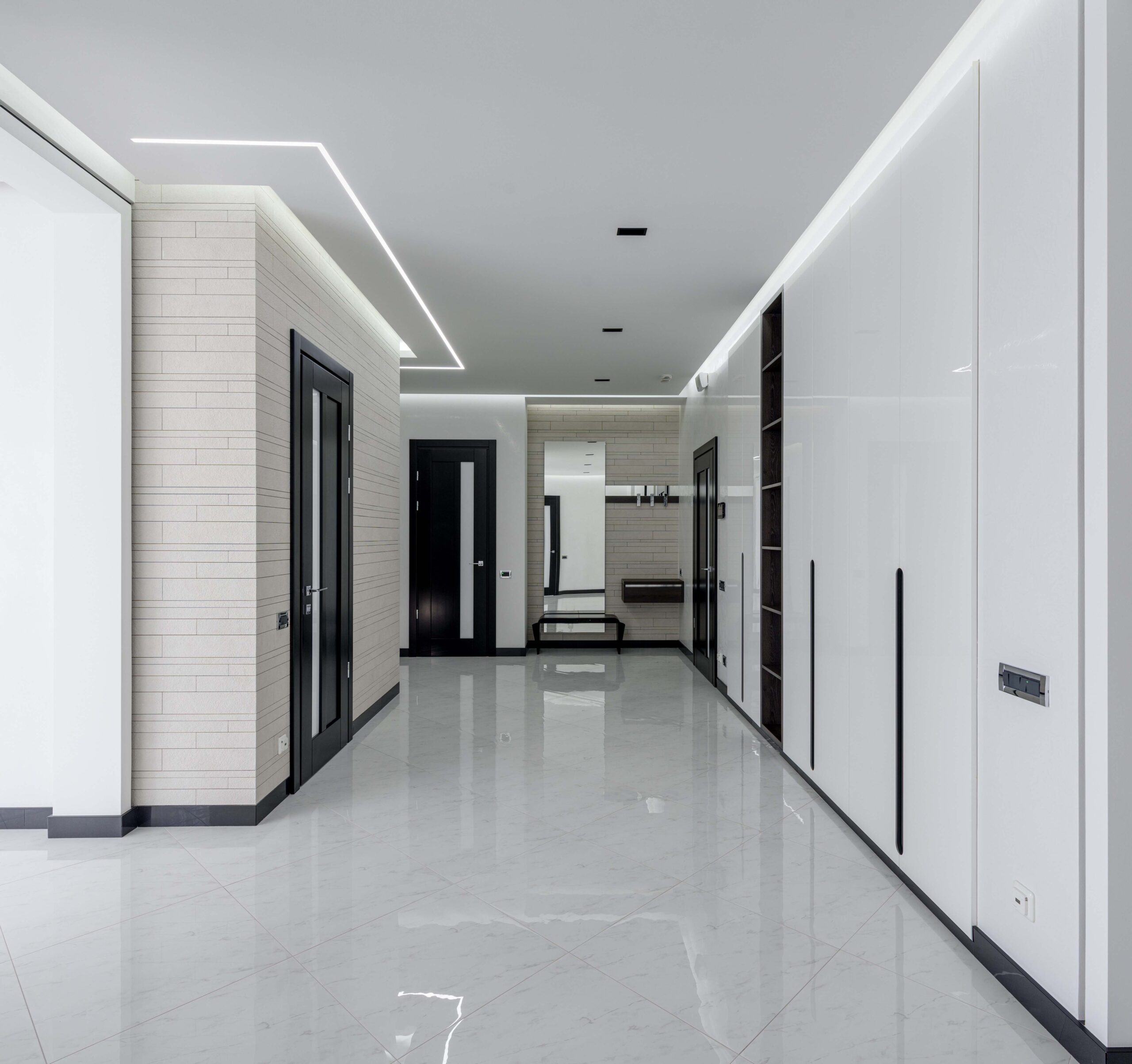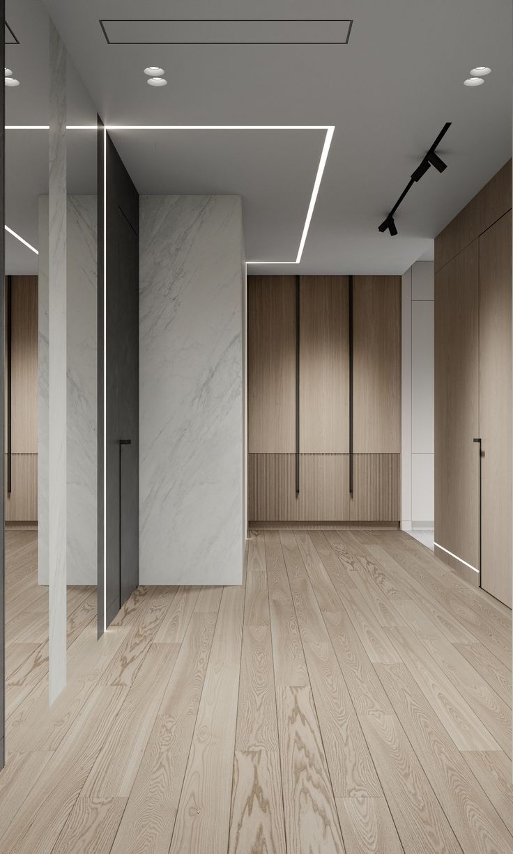 Зараз перехід світлових ліній зі стелі на стіни і навпаки дуже популярний прийом у дизайні інтер’єру та освітленні.