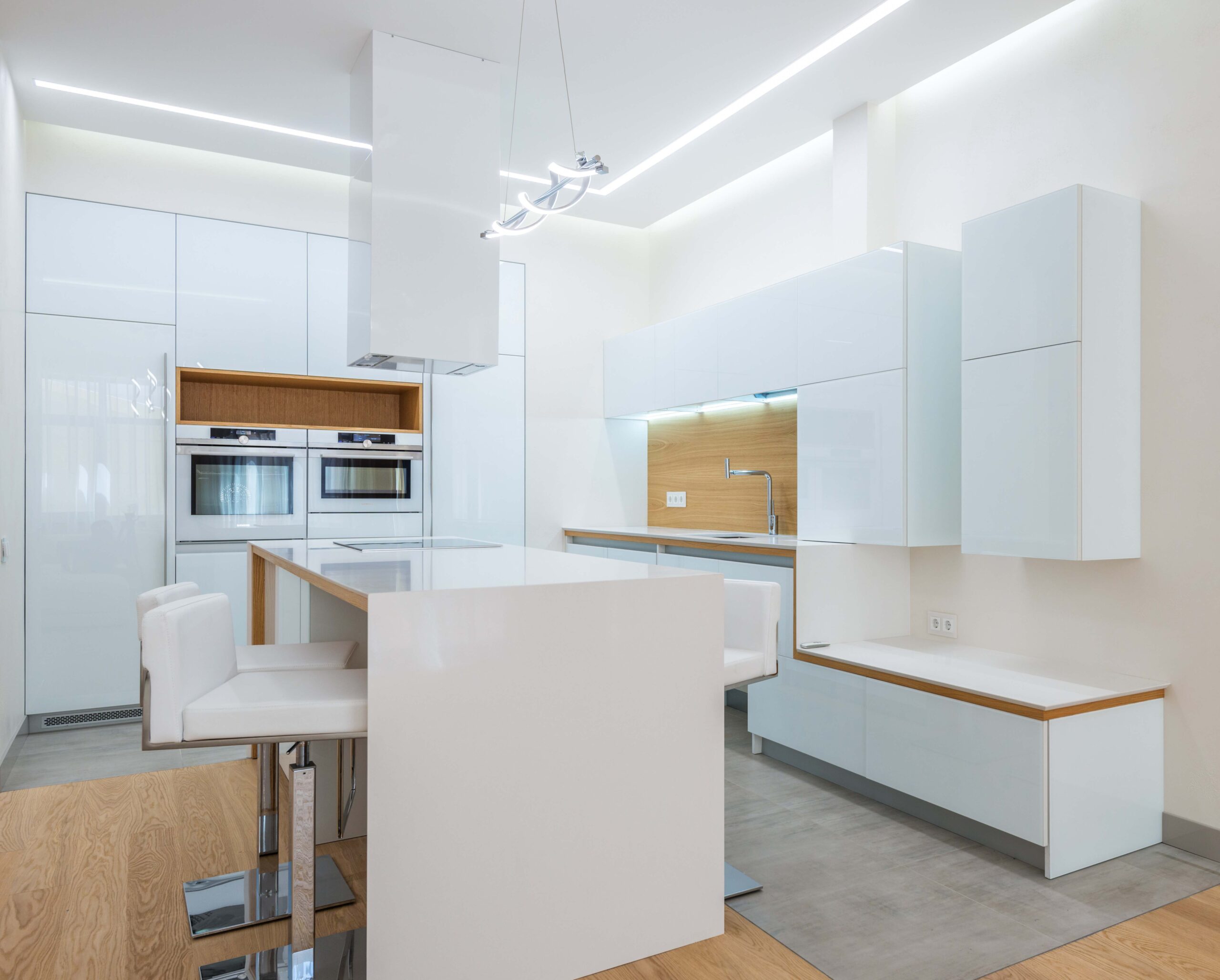 Головна перевага світлових ліній на натяжній стелі – це нетривіальний вигляд приміщення, стильний, ультрамодний інтер’єр. Також до переваг слід віднести той факт, що профіль для підсвічування має високий рівень надійності, а світлодіодні стрічки економічні у питанні енергоспоживання.