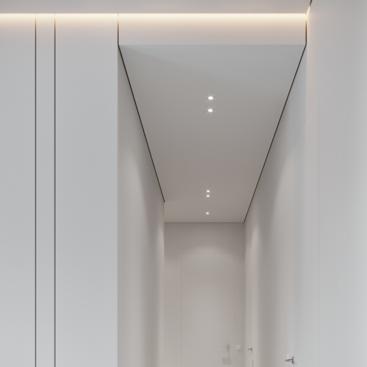 Різні вигини та складна геометрія приміщення не є на заваді при монтажі тіньової стелі, при належній кваліфікації робітників. Це головна перевага та головна причина полюбити тіньове примикання.